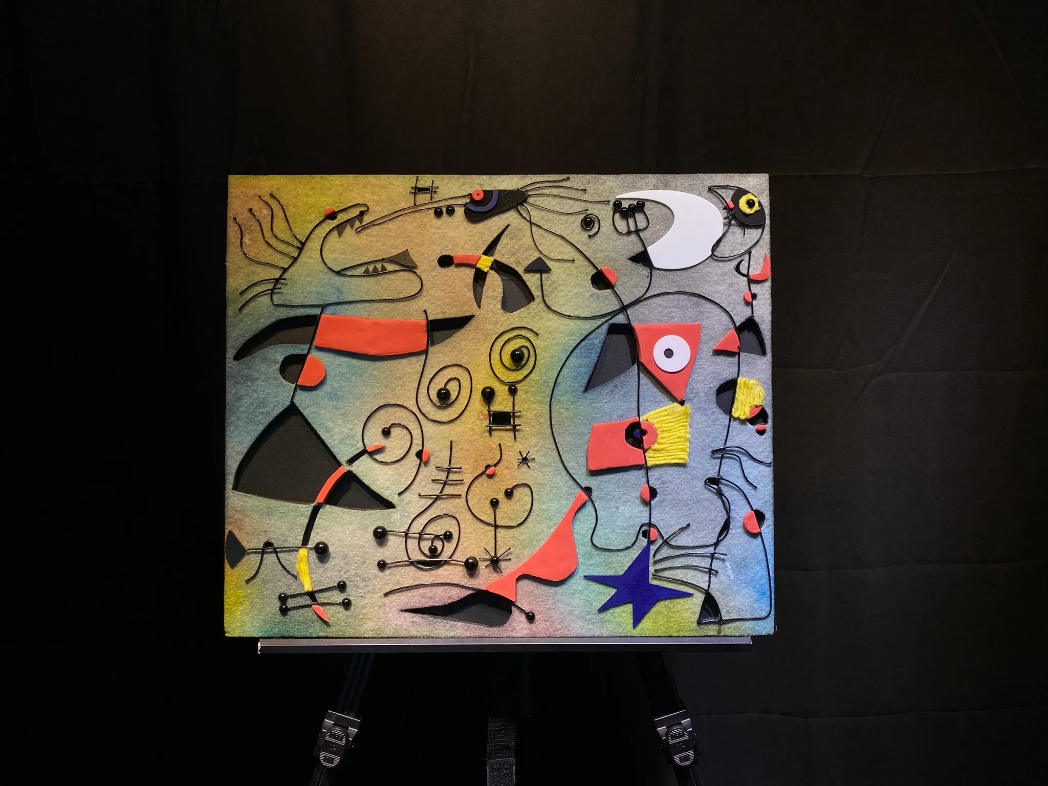 호안 미로의 작품은 아이가 그린 그림처럼 천진난만하고 자유분방함이 특징이다. 이런 특징 때문에 쉽게 그렸을 거라 생각하지만 그림의 요소들이 완벽하게 자리를 잡을 때까지 그림의 전체 배열을 철저하게 계산하며 작업했다고 한다. 특히, 초현실주의 화풍은 단순하고 순수한 형태와 색의 조화를 통해 시각적 리듬과 유쾌한 느낌을 전달한다.
