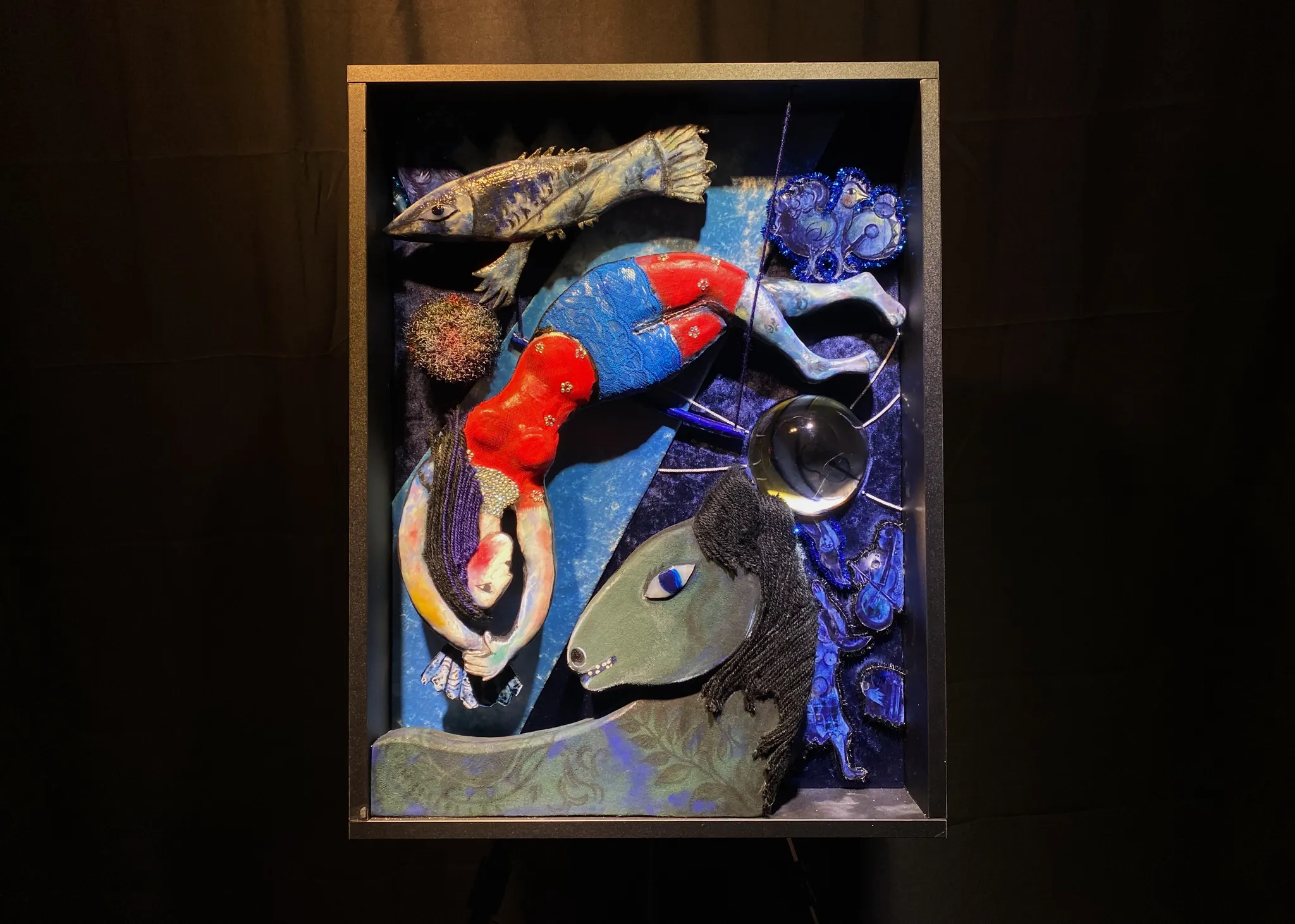이 그림의 중앙에는 붉은 서커스복을 입은 여성 곡예사가 공중그네에 거꾸로 매달려서 오른쪽을 바라본다. 여성 곡예사가 바라보는 쪽에는 녹색말이 미소를 지으며 서로를 마주보고 있다. 녹색말의 머리 위에는 빛나는 해와 반달이 있고, 푸른색의 무대는 마치 물속처럼 신비로운 분위기를 풍긴다.