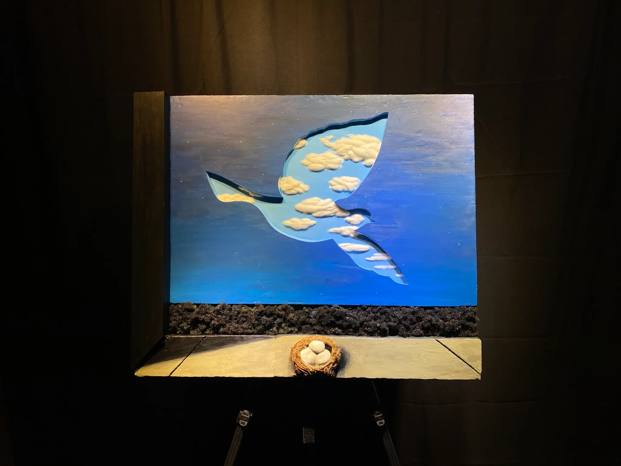 창밖으로 보이는 푸른 밤하늘의 풍경과 날개를 활짝 펴고 날아가는 새의 형상이 있다. 짙은 녹색의 울창한 숲이 보이는 밤하늘에는 별이 총총히 박혀있고, 새의 형상 속 밝은 낮 하늘에는 구름이 지나가는 하늘이 겹쳐있다. 창틀 위에는 지푸라기로 만든 새 둥지에 알 세 개가 놓여있다. 마그리트는 낮과 밤을 동시에 묘사하여 꿈같은 순간을 그림으로 남겼다.
